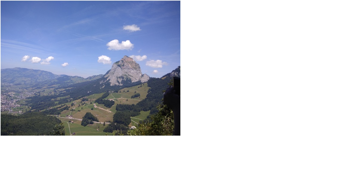 We then drove to the foothill of Fallenflue, the surrounding looked like a painting with mountains, clear sky, green grass, trees and a hut shaped house nearby. The clear sky displayed the thin contours of light emanating from the sun.